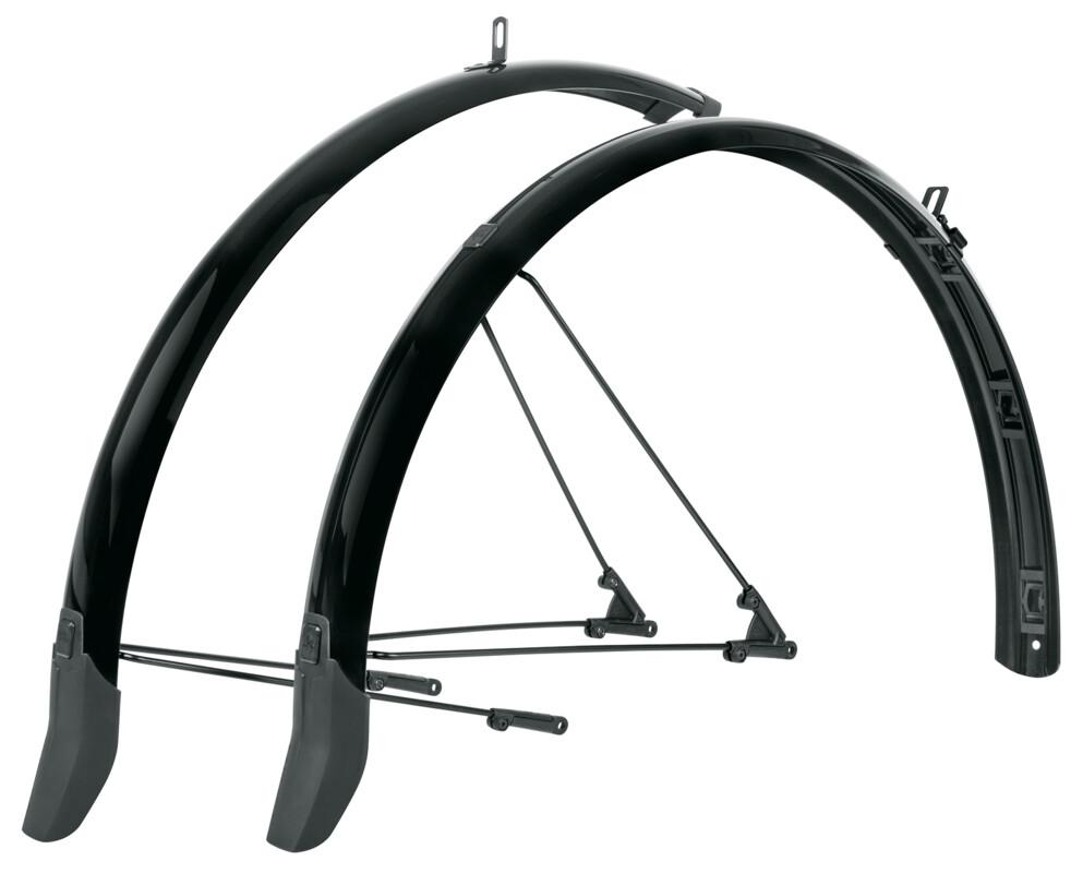Das verbesserte SKS Schutzblech-Set BLUEMES CABLE LINE verfügt ein innovatives MK Kabelführungssystem, in dem sich die Verkabelung mit Clips befestigen lässt. Die Spoiler sorgen für optimalen Spritzschutz. Dank der flexiblen Sandwichkonstruktion, in der hochfeine Aluminiumstreifen in einer Kunststoff-Ummantelung eingebettet werden, sind die glänzend schwarzen Radschützer extrem robust, biegesteif und korrosionsgeschützt. Durch den integrierten Kabelkanal ist die BLUMELS CABLE LINE perfekt für die Nutzung an Fahrrädern mit Gepäckträger. Das Rücklicht Kabel kann einfach und schnell unter dem Radschutz verlegt werden. Die MK-Klips gewährleisten einen sicheren Halt und sorgen dafür, dass das Kabel nicht in Kontakt zum Reifen kommt. Inklusive Strebensatz, Schiebebrücke und Montagematerial.