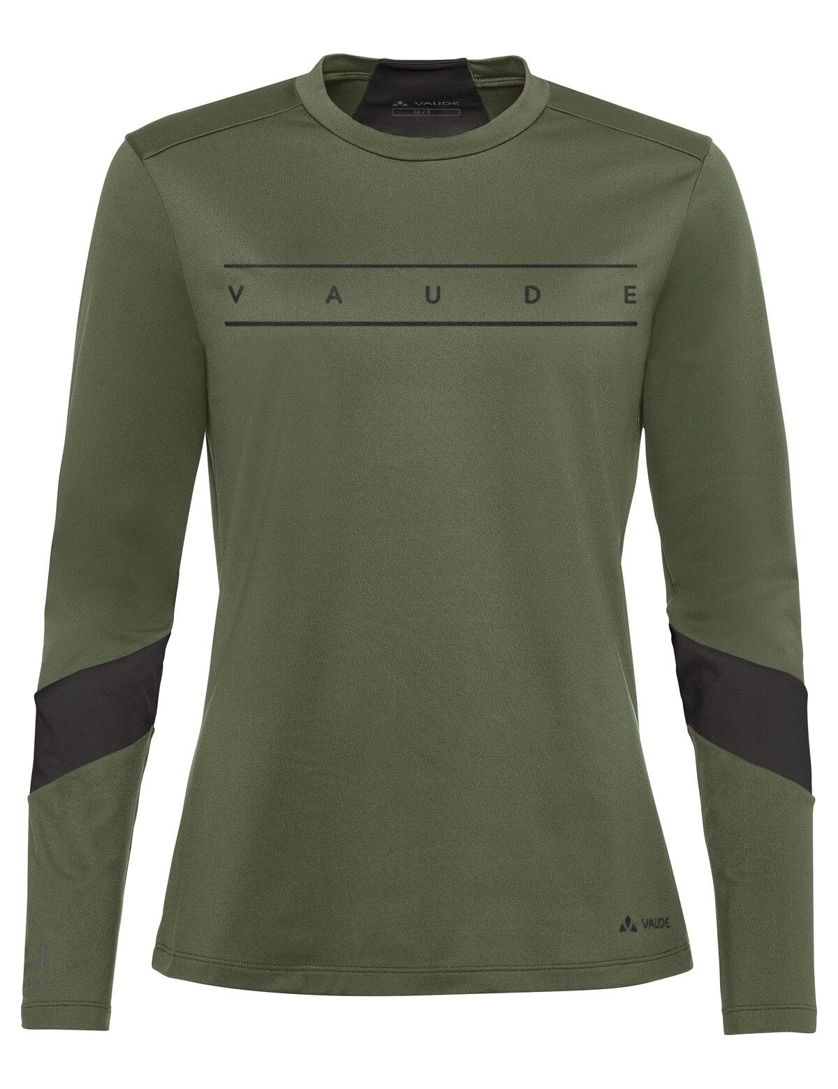 Vielseitiges Damen Langarm Radtrikot für VAUDE Fans #elastisches Logo Shirt mit raffinierten Details #atmungsaktiv und schnelltrocknend #klimaneutral, überwiegend aus recyceltem Material hergestellt